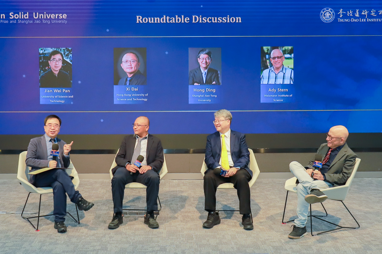 During the roundtable discussion, Jian-Wei Pan engaged in an in-depth dialogue with the three speakers—Xi Dai, Hong Ding, and Ady Stern—on topics such as “the journey of collaboration,” “future opportunities and challenges in topological materials,” and “the impact of AI on scientific research.” They also took questions from faculty and students in the audience.